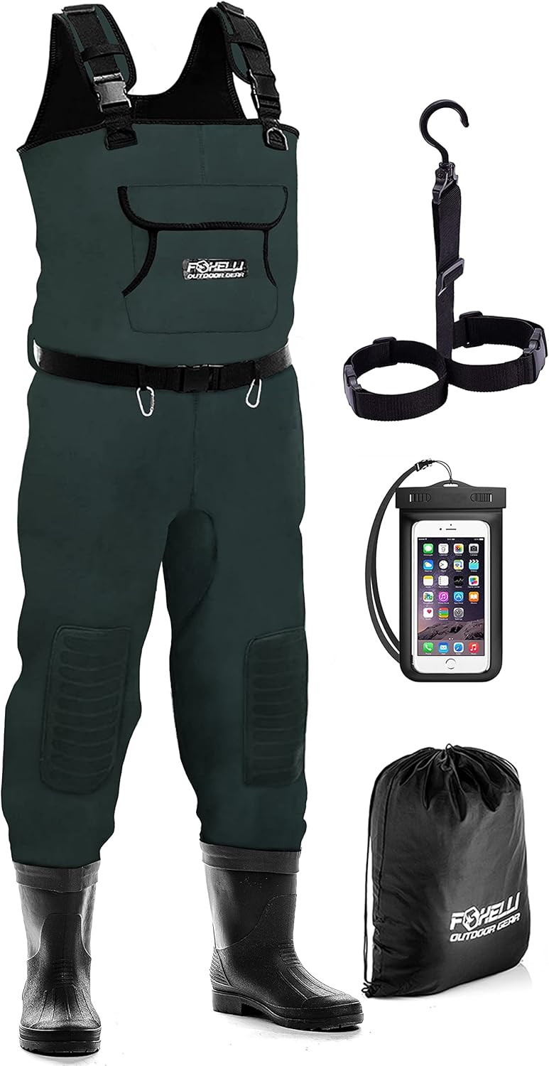 Foxelli Chest Waders, Waterproof 4mm Neoprene Hunting & Fishing Waders for Men & Women with Boots